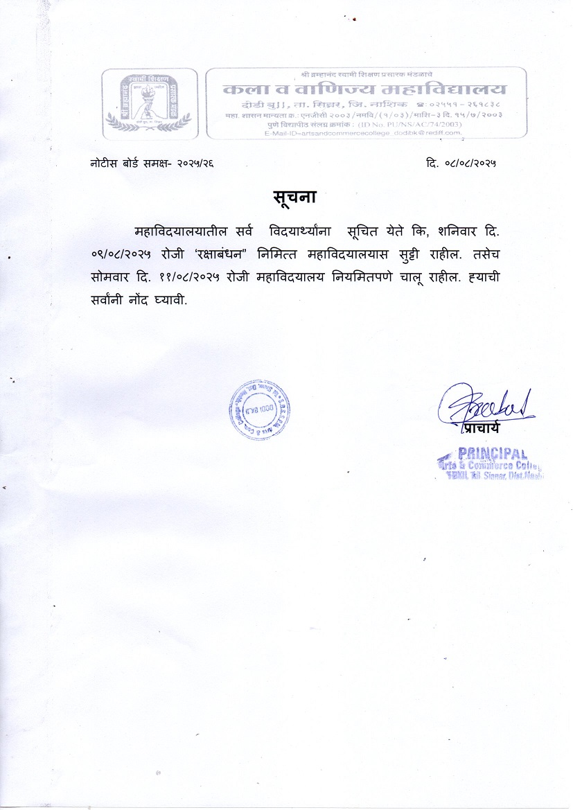 E-Mail-ID = artsandcommercecollege_dodibk@rediff.com.